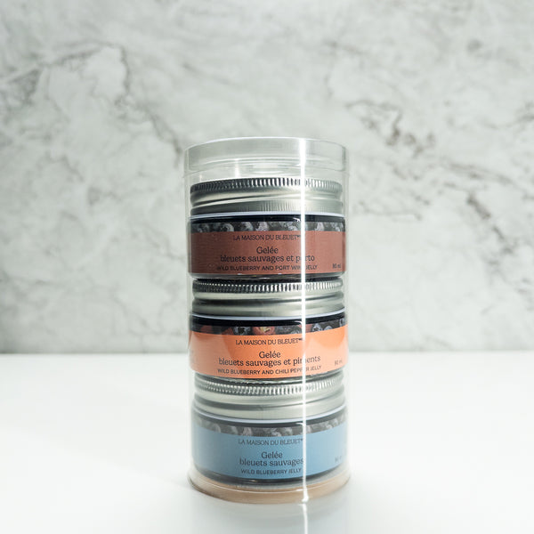 La Boîte Apéro est un ensemble délicat conçu pour enrichir vos moments de convivialité. Elle comprend une gelée de bleuets sauvages, une gelée de piment aux bleuets sauvages et une gelée de porto aux bleuets sauvages, chacune apportant une palette de saveurs équilibrée entre douceur fruitée, légère chaleur et richesse aromatique.